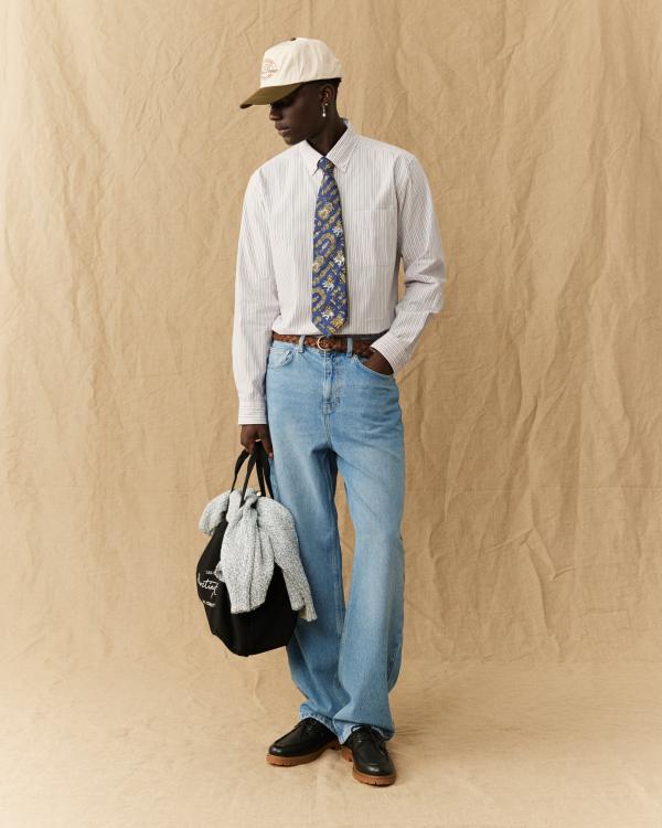 Presenting The Roots, our Summer 2025 collection. The season is anchored around contemporary urban uniforms and preppy ‘90s leisurewear, with a touch of vintage athletic styling to add something extra. Key looks include wide-cut denim sets, jacquard short sleeves, mesh co-ords and embroidered shirts. A dusty palette of tan, khaki and willow green runs throughout, grounded in textured fabrics like slub linen, dobby cotton and glossy nylon. Artwork and detailing nod to the past through tonal prints, cursive lettering and retro-style embroidery.